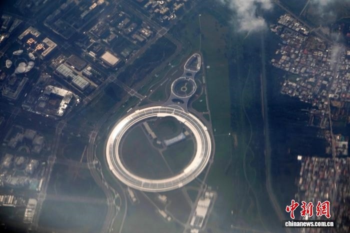 2025年8月30日,客機(jī)飛過北京懷柔科學(xué)城時,航拍高能同步輻射光源(HEPS)大科學(xué)裝置。中新網(wǎng)記者 孫自法 攝