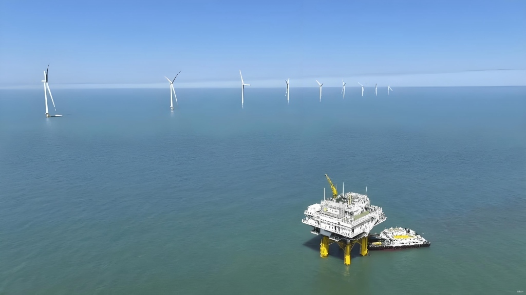 圖為山東省東營市的渤中海上風(fēng)電項目。新華社發(fā)