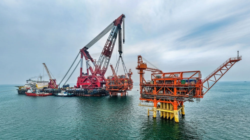 9月8日,墾利6-1油田10-1北區(qū)塊Ⅱ期開發(fā)項(xiàng)目油氣平臺(tái)在渤海海域完成海上安裝(無(wú)人機(jī)照片)。新華社發(fā)(杜鵬輝 攝)