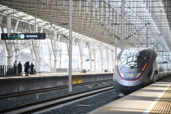 冬日暖陽(yáng),灑向延安火車(chē)站的站臺(tái)。26日10時(shí)許,“復(fù)興號(hào)”智能動(dòng)車(chē)組列車(chē)駛出站臺(tái),向著關(guān)中平原飛馳而去,縈繞在老區(qū)幾代人心中的高鐵夢(mèng)照進(jìn)現(xiàn)實(shí)。
