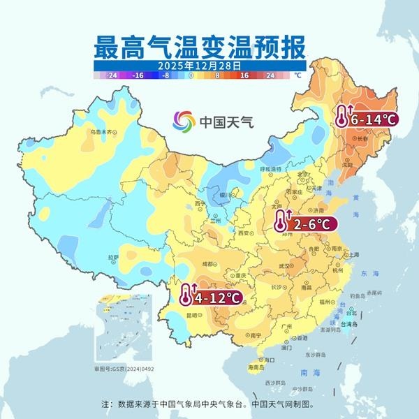 這場年尾超級大回暖正在席卷我國大部地區(qū),并將持續(xù)至29日。明后天,回暖幅度和范圍進(jìn)一步升級,北方地區(qū)明天氣溫普遍達(dá)到高點(diǎn),南方地區(qū)將在后天(29日)前后迎來過程氣溫高點(diǎn)。其中明天,最高氣溫0℃線將同期少見地挺進(jìn)東北,并北抬至吉林中部,黃淮南部到江南普遍在15℃以上,華南也將重返20℃以上,短袖有了重新出場的機(jī)會。