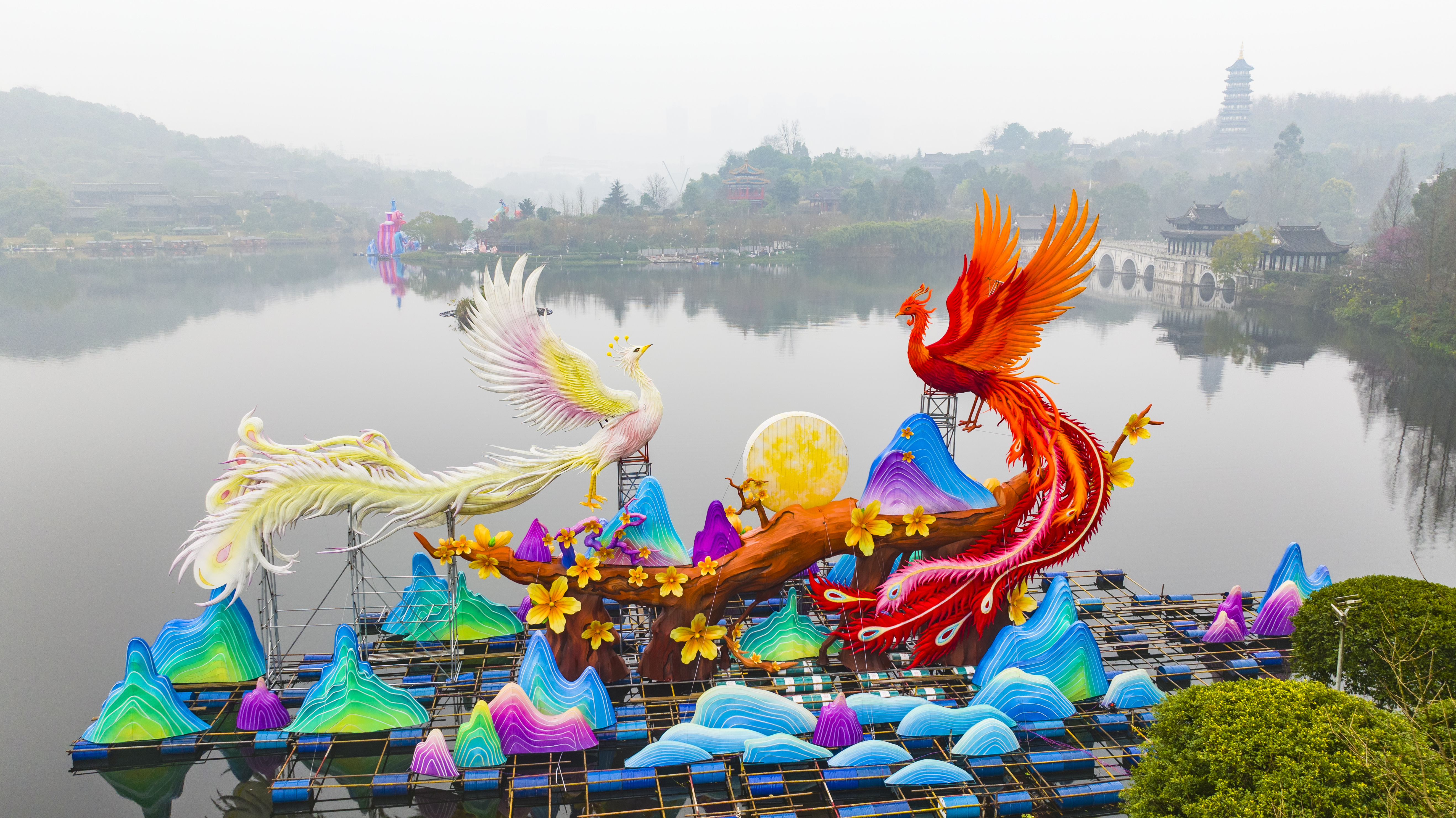 ▲重慶園博園,2026重慶市新春燈會(huì)——“禧歡霓”園博園大型水上燈會(huì)現(xiàn)場,造型精美的彩燈已初現(xiàn)雛形。(無人機(jī)照片)記者 齊嵐森 攝/視覺重慶