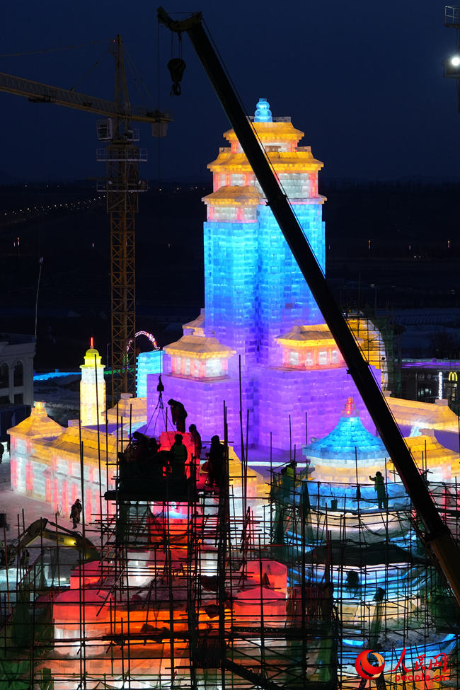 冰為磚、水為泥、燈為飾,打基礎(chǔ)、做鋼架、砌冰墻……最忙時,曲超和5500余名工人夜以繼日,在攝氏零下的氣溫中“玩冰嬉雪”,睫毛上全是凝結(jié)的霜花?!氨┦嵌虝旱乃囆g(shù),一旦進入冰雪施工季,都得緊抓時間,盡量把施工時間壓縮到最短,這樣留給游客欣賞的時間就會更長。”曲超說。