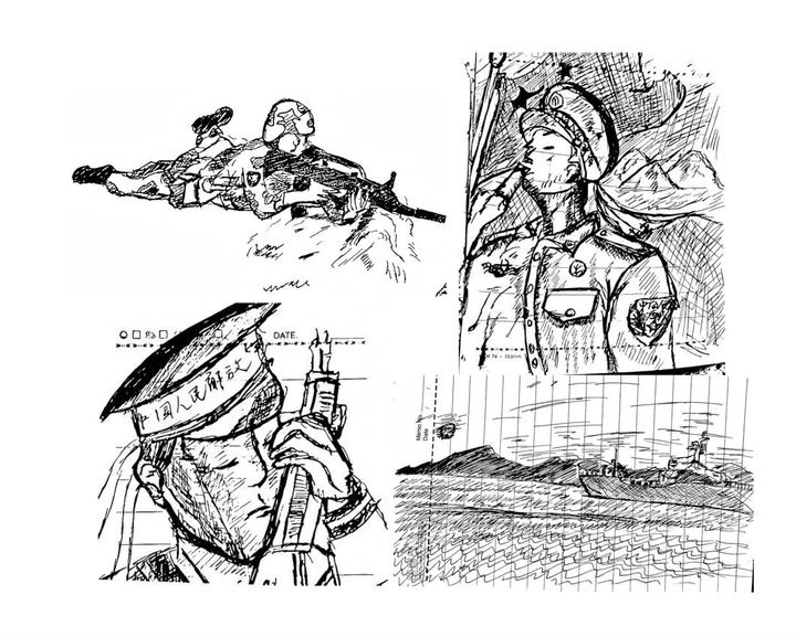 日記的封面印有金色大字“人民海軍”。翻開首頁,映入眼簾的是這樣一句話:“無名無利無悔,有情有義有祖國?!北咀永镞€夾著一幅手繪插畫——一名軍人正向軍艦莊嚴敬禮。日記中還記錄著這樣的心聲:“一個軍禮,一生托付,一句誓言,一生承諾!”字里行間,是一個青年對家國的赤誠與擔(dān)當(dāng)。