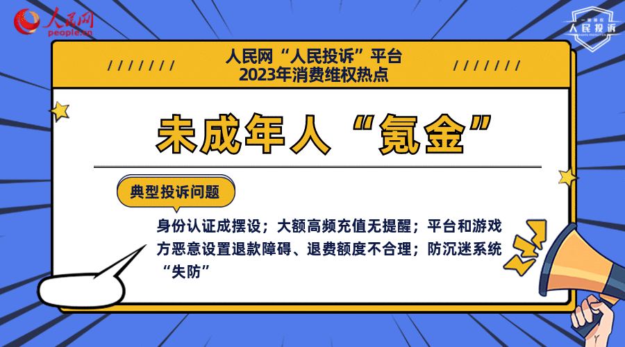 典型投訴問題:身份認證成擺設;大額高頻充值無提醒;平臺和游戲方惡意設置退款障礙、退費額度不合理;防沉迷系統(tǒng)“失防”