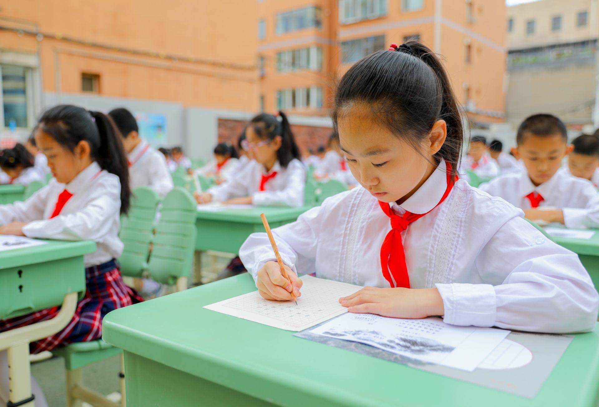 6月13日,呼和浩特市玉泉區(qū)恒昌店巷小學(xué)的學(xué)生們正在參加書法比賽。當(dāng)日,該校“校園書法文化節(jié)”漢字書寫大賽開賽,200多名學(xué)生在硬筆和軟筆項目上展開比拼。活動旨在提高孩子們漢字書寫水平,弘揚中華民族優(yōu)秀傳統(tǒng)文化。
