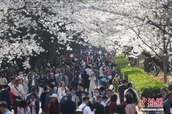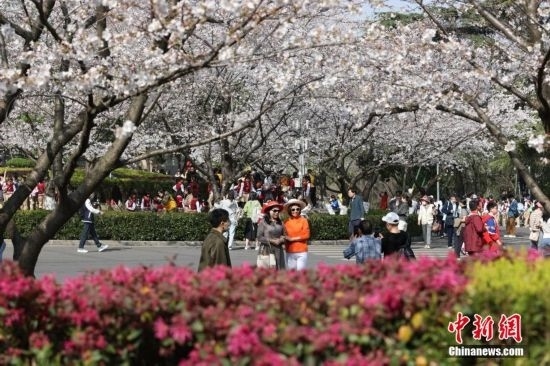 3月15日,武漢大學(xué)賞櫻預(yù)約首日,櫻花大道、鯤鵬廣場(chǎng)附近人潮涌動(dòng)。今年櫻花開(kāi)放期間,武漢大學(xué)延續(xù)“實(shí)名限額、網(wǎng)絡(luò)預(yù)約、雙重核驗(yàn)”做法,面向社會(huì)公眾實(shí)行免費(fèi)預(yù)約賞櫻制,工作日每天預(yù)約限額1.5萬(wàn)人,周末每天預(yù)約限額3萬(wàn)人。此外,還將于3月18日舉辦醫(yī)護(hù)賞櫻專場(chǎng),邀請(qǐng)?jiān)踽t(yī)療隊(duì)及湖北省內(nèi)抗疫醫(yī)護(hù)人員來(lái)校賞櫻,并在弘毅門(原西門)舉行歡迎儀式。 趙軍 攝