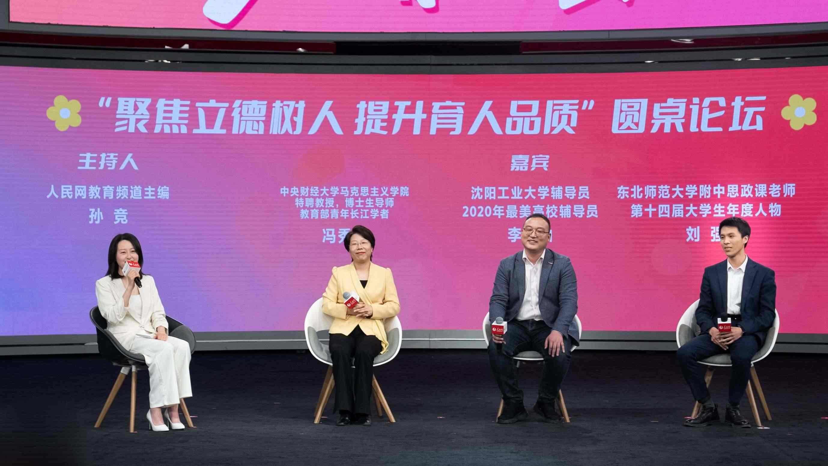 在“聚焦立德樹人,提升育人品質(zhì)”思政圓桌環(huán)節(jié)上,人民網(wǎng)教育頻道主編孫競(jìng)與多位教育一線思政老師展開對(duì)話。中央財(cái)經(jīng)大學(xué)馬克思主義學(xué)院特聘教授、博士生導(dǎo)師、教育部青年長(zhǎng)江學(xué)者馮秀軍表示,“一百多年前那個(gè)時(shí)代的青年,用青春和熱血為我們打造出了今天這樣一個(gè)中國(guó)青年可以平視世界的新天地。我們這片熱土,蘊(yùn)含了無(wú)限的力量和希望,希望同學(xué)們投身實(shí)踐,尋找到我們的使命,從而獲得青春奮進(jìn)的力量。”