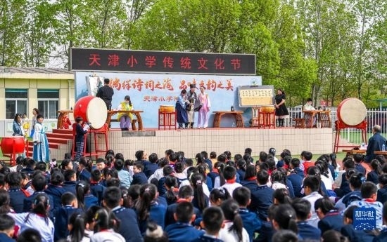 當日,以“徜徉詩詞之海,品味文韻之美”為主題的傳統(tǒng)文化節(jié)在天津小學舉行。學生們在老師的指導下參與國學朗誦、京劇選段表演、書畫展示等活動,感受傳統(tǒng)文化的魅力。