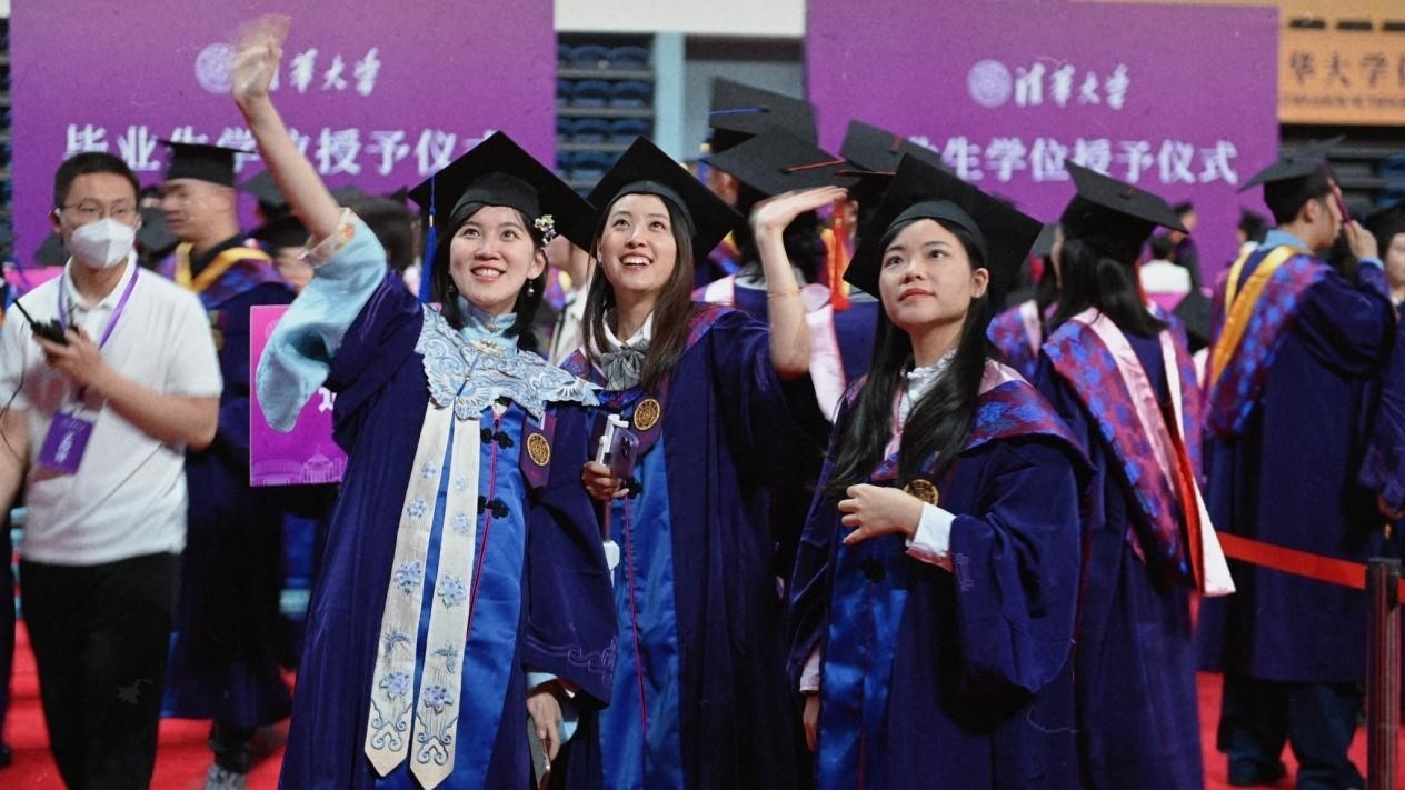畢業(yè)生向看臺揮手。清華大學(xué)供圖