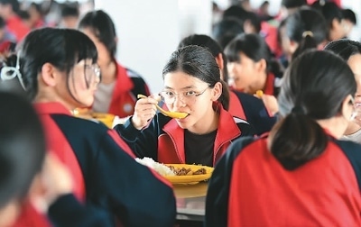 近年來,安徽省阜陽市阜南縣各配備有營養(yǎng)餐的學校嚴把食品衛(wèi)生關(guān),讓學生的營養(yǎng)餐真正成為陽光餐、幸福餐。圖為5月17日,阜南縣黃崗鎮(zhèn)靳成學校的學生們在食堂吃午飯。 呂乃明攝(人民視覺)