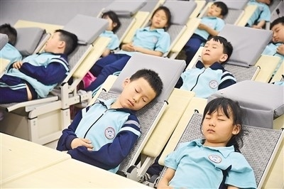 近年來,河北省邯鄲市復(fù)興區(qū)先后投入360余萬元,購置躺式桌椅、固定床、折疊床、睡墊,解決孩子餐后睡眠的難題。圖為5月29日,在復(fù)興區(qū)百花第二小學,學生們使用“躺式課桌椅”午休。 郝群英攝(人民視覺)