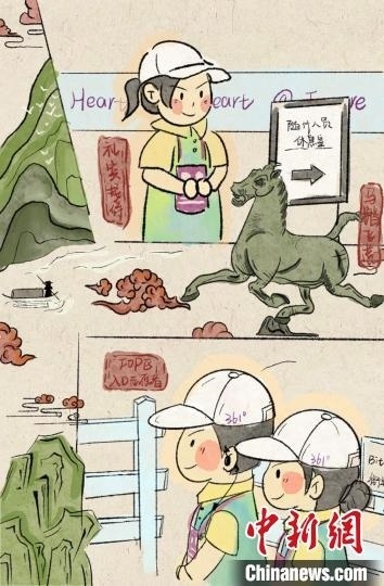該組漫畫中,Q版人物配上荷花、祥云、馬匹等國(guó)風(fēng)元素,既可愛又新潮。每一組漫畫繪制了兩類不同組別,共展現(xiàn)了11個(gè)領(lǐng)域的志愿者形象。