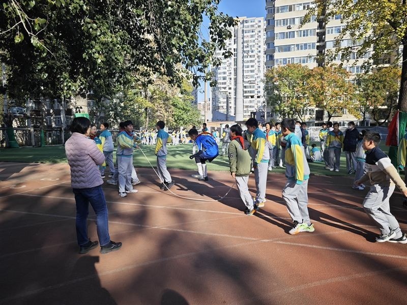 為了引導孩子們課間走出教室,北醫(yī)附小根據(jù)季節(jié)設(shè)計大型集體項目,比如秋季開展的跳長繩,老師們也參與進來搖繩,帶動更多孩子參加體育鍛煉?!白寣W生在課間得到充分休息、活動,才能保證學生的課堂狀態(tài),從而促進課堂教育教學質(zhì)量提升?!碧飮⒈硎尽?/p>