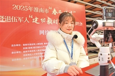 近日,安徽省淮南市舉行2025年“春風送暖”大型招聘會,351家企業(yè)提供近萬個工作崗位。圖為一名主播在招聘會現(xiàn)場進行網(wǎng)絡直播助力就業(yè)。