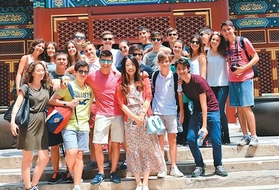 圖為孩子們與機(jī)器狗互動(dòng)。