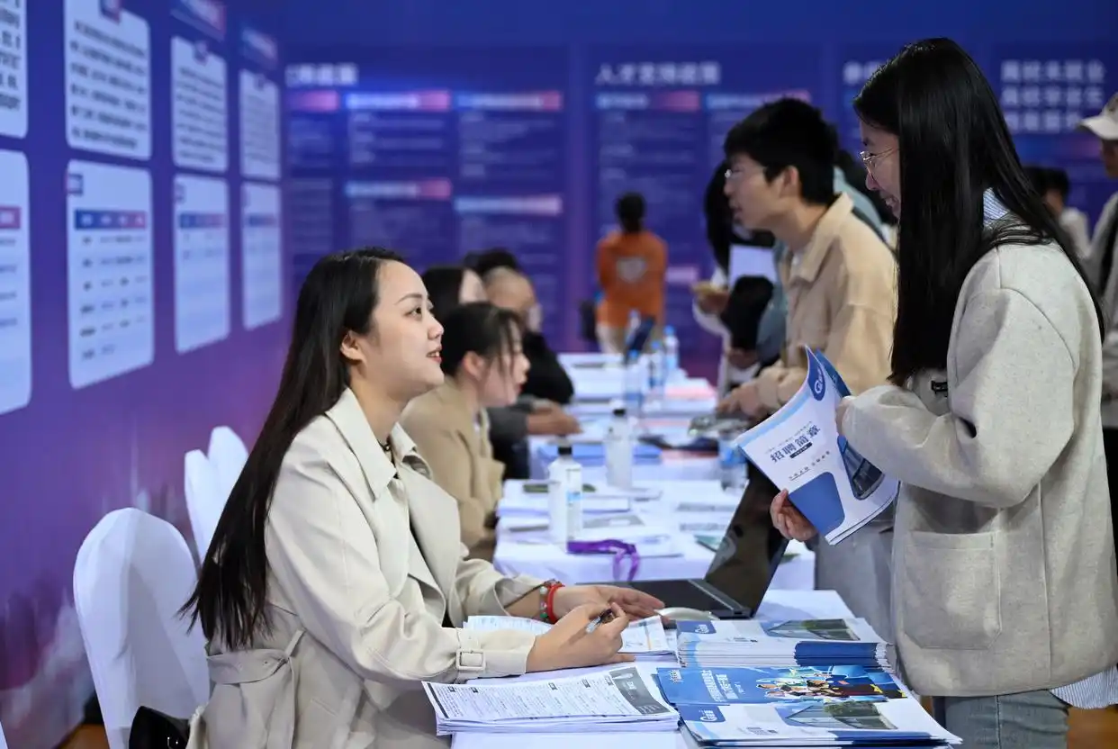 3月20日,環(huán)渤海城市聯(lián)合招聘高校畢業(yè)生春季專場活動在天津職業(yè)技術師范大學啟動,來自環(huán)渤海地區(qū)400多家企業(yè)提供崗位1.1萬個?;顒蝇F(xiàn)場還設立就業(yè)服務臺,為學生提供指導。圖為當日,求職學生(右)和招聘方代表在招聘會現(xiàn)場交談。新華社記者 趙子碩攝