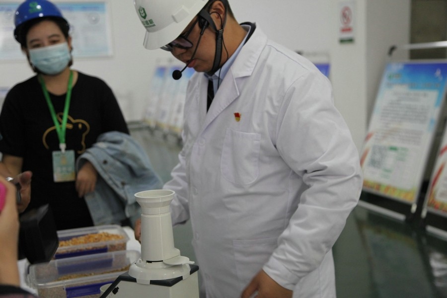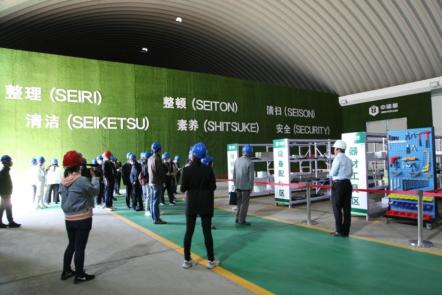 在引導人員的帶領下,嘉賓們來到機械罩棚聽取公司“6S”管理推進情況及各類糧食機械設備的用途介紹;在安全警示教育室和微型消防站內,大家饒有興趣地參與觸電、滅火及安全帽撞擊等各類安全生產體驗,看保障企業(yè)“兩個安全”的硬實力;在職工創(chuàng)新工作室,聽取講解員對內環(huán)流控溫“黑科技”的講解,體驗糧食檢驗操作流程;走進黨員示范倉,腳踏豐實糧面,親身體驗平整糧面、扦樣檢查等日常保管工作。最后,大家認真聽取了公司“大黨建”、“大監(jiān)督”、“大安全”及“大發(fā)展”四個方面工作的展區(qū)介紹,紛紛對中儲糧在維護國家糧食安全方面的工作給與肯定,并對中儲糧致力于綠色儲糧的“工匠精神”表示贊嘆,真切感受到了中儲糧嚴格把控質量、守護“舌尖上的安全”的央企社會擔當。