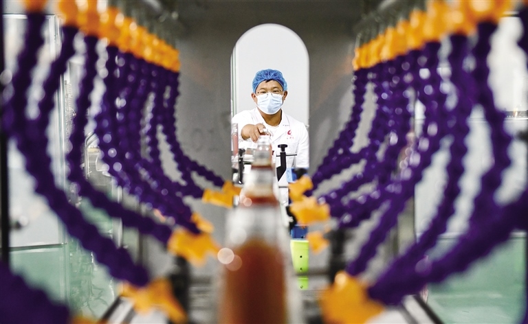 7月6日,內(nèi)蒙古昌興達(dá)實(shí)業(yè)有限責(zé)任公司的工人正在生產(chǎn)線上作業(yè)。該公司采取“公司+基地+農(nóng)戶”的標(biāo)準(zhǔn)化管理模式,與260多戶農(nóng)戶簽訂了有機(jī)枸杞種植協(xié)議,由公司免費(fèi)為農(nóng)戶提供生物農(nóng)藥、管理技術(shù),并高于市場(chǎng)價(jià)回收,既保障了枸杞的品質(zhì),也促進(jìn)了農(nóng)戶增收。廠區(qū)擁有枸杞干果、有機(jī)枸杞原漿、西紅柿原漿等多條生產(chǎn)線,產(chǎn)品出口歐美等26個(gè)國(guó)家和地區(qū)。(本報(bào)記者 孟和朝魯 攝)