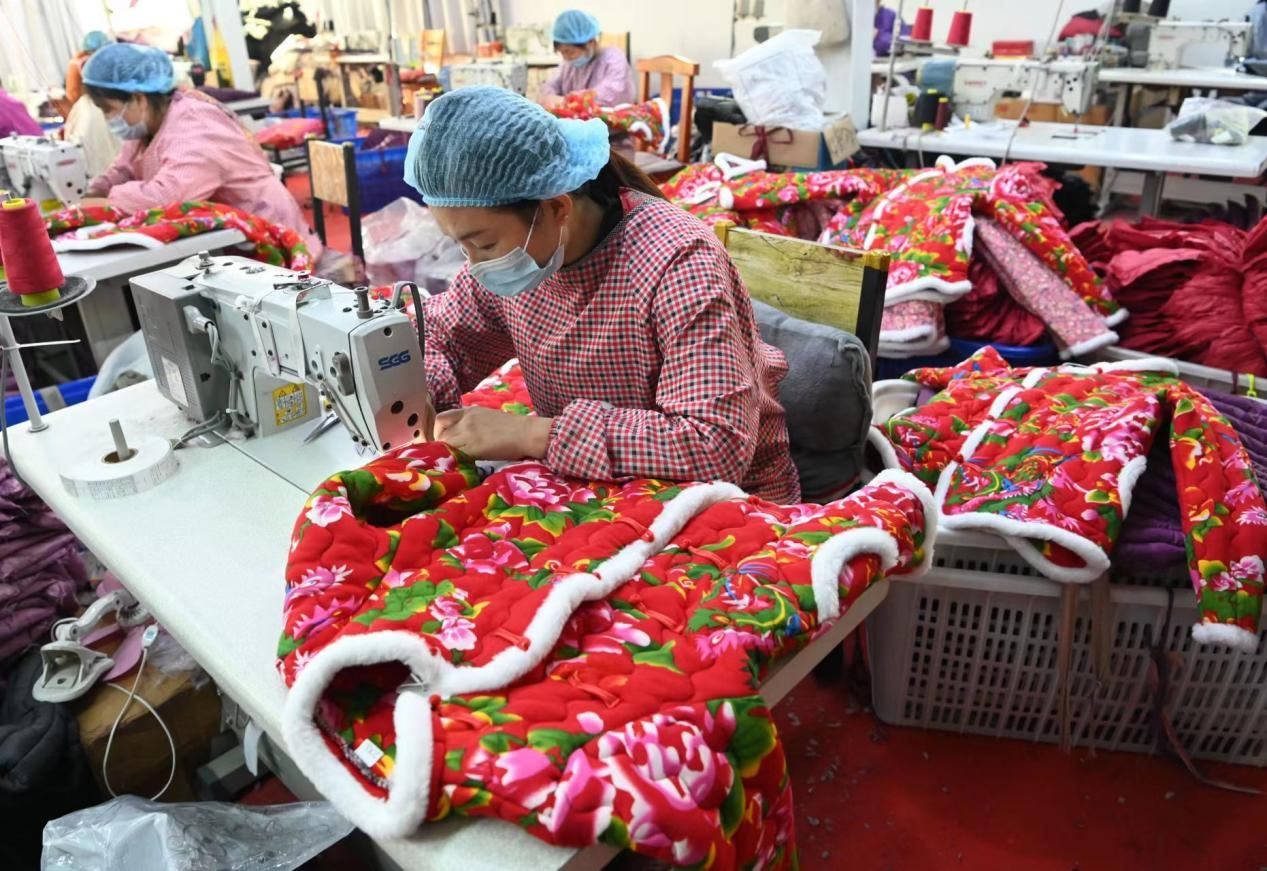 “把制作棉襖的傳統(tǒng)工藝重新挖掘出來,在款式和版型上加入現(xiàn)代的新元素,逐漸得到了市場的認可和消費者的喜愛。這些工人有些是脫貧戶、低保戶,通過我們這個平臺她們能得到一部分收入,我們希望吸納更多的家庭婦女加入到我們的隊伍中。”晨飛翔服飾加工廠負責(zé)人說。