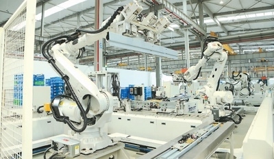 浙江省杭州市臨平區(qū)經(jīng)開(kāi)區(qū)一座“黑燈工廠”,智能機(jī)械臂正忙著工作。竇瀚洋 王 玨 攝影報(bào)道