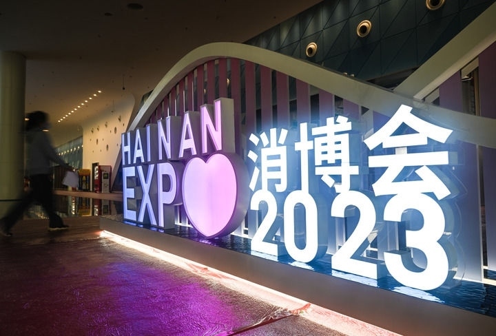 4月8日拍攝的第三屆中國(guó)國(guó)際消費(fèi)品博覽會(huì)展館內(nèi)部場(chǎng)景。新華社記者 蒲曉旭 攝