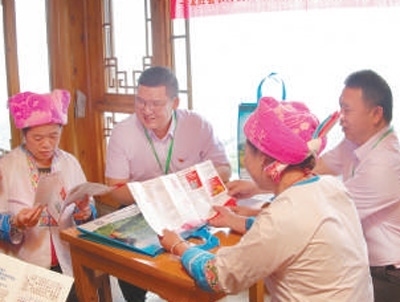 中國農(nóng)業(yè)銀行員工為農(nóng)民提供“惠農(nóng)e貸”產(chǎn)品服務。