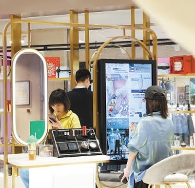 除了大型商圈,小型社區(qū)商圈的活力也被激發(fā)。沒有導(dǎo)購(gòu)員、沒有收銀臺(tái),在西安高新區(qū)蘭島廣場(chǎng)一間百余平方米的小店內(nèi),幾位女顧客正在試妝鏡前試用口紅、眼影等美妝產(chǎn)品。這家銀泰智慧“云店”提供了幾十個(gè)美妝品牌的上百種小樣,顧客隨到隨試,試用滿意后通過(guò)電子屏下單,同城當(dāng)日就可送達(dá)。銀泰“云店”項(xiàng)目負(fù)責(zé)人吳策說(shuō):“運(yùn)用數(shù)字技術(shù)打通線上線下,‘云店’模式助力消費(fèi)者在小型社區(qū)商圈享受優(yōu)質(zhì)的購(gòu)物體驗(yàn)。”