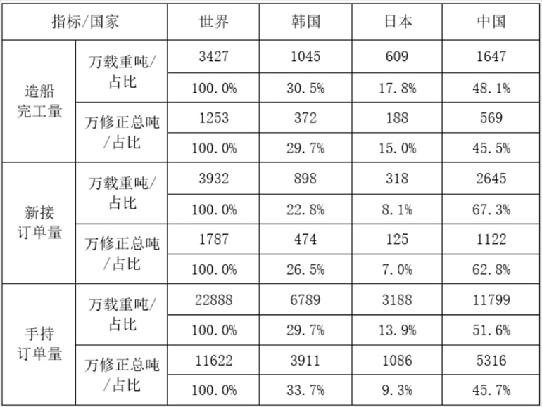 另據(jù)數(shù)據(jù)顯示,1-5月,全國造船完工量569萬修正總噸,同比增長29%;新承接船舶訂單量1122萬修正總噸,同比增長24.2%。截至5月底,手持船舶訂單量5316萬修正總噸,同比增長27.4%。按修正總噸計(jì),中國造船完工量、新接訂單量、手持訂單量分別占世界市場份額的45.5%、62.8%和45.7%。