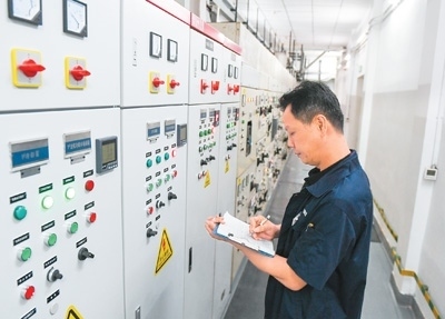 8月21日,在廣東省深圳市國貿(mào)大廈空調(diào)機(jī)房,物業(yè)工作人員在新裝的智能物聯(lián)網(wǎng)控制柜前進(jìn)行運(yùn)行抄表。新華社記者 毛思倩攝