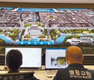 客流量浮動(dòng)、監(jiān)測(cè)點(diǎn)位數(shù)據(jù)變化、AI風(fēng)險(xiǎn)預(yù)警……在西安城墻管委會(huì)信息中心,一個(gè)個(gè)詳細(xì)的實(shí)時(shí)數(shù)據(jù)每天都在大屏幕上滾動(dòng)呈現(xiàn)。輕擊鼠標(biāo),虛實(shí)結(jié)合的數(shù)字“城墻”便出現(xiàn)在人們眼前,從外部的磚瓦彩繪到內(nèi)部的建筑結(jié)構(gòu),透過“數(shù)字方艙”超大屏端頁面,西安城墻的各種信息映入眼簾。這座“虛擬城墻”便是西安城墻數(shù)字方艙綜合管理平臺(tái)的一部分。近年來,西安城墻運(yùn)用數(shù)字孿生、人工智能、大數(shù)據(jù)、物聯(lián)網(wǎng)、地球物理等前沿技術(shù),與高校、科研院所和骨干企業(yè)共建,打造了一套集文物保護(hù)、文旅運(yùn)營、應(yīng)急管理、防汛指揮等功能于一體的“文化遺產(chǎn)數(shù)字化保護(hù)利用綜合解決方案”,實(shí)現(xiàn)了關(guān)鍵技術(shù)突破及文保文旅數(shù)據(jù)的融合共享。