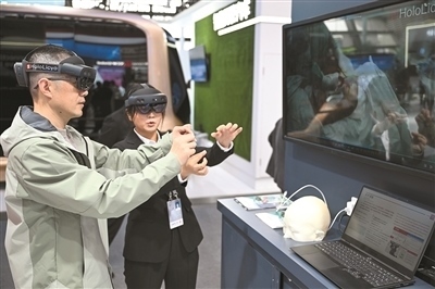 在2024年世界互聯網大會“互聯網之光”博覽會上,參觀者體驗一款全息智能醫(yī)學影像系統做手術的過程。新華社記者 蔡湘鑫攝