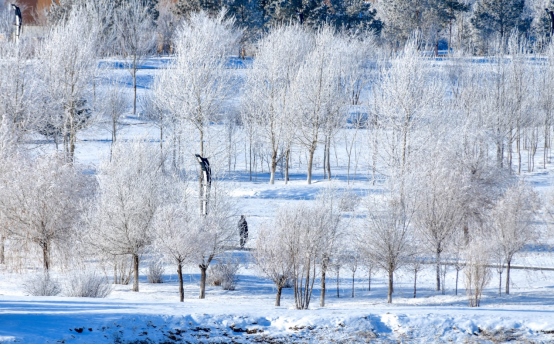呼倫貝爾市氣象臺(tái)數(shù)據(jù),呼倫貝爾市入冬以來(lái)氣溫持續(xù)走低,12月1日海拉爾區(qū)的最低氣溫達(dá)到零下25.5℃,相對(duì)濕度超過(guò)83%,溫度低、濕度大的條件有利于霧凇的發(fā)生。