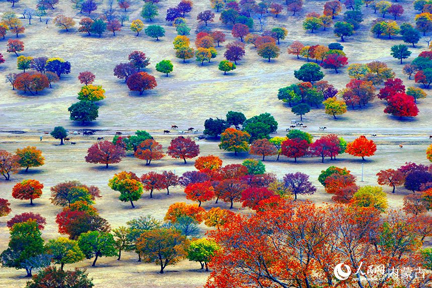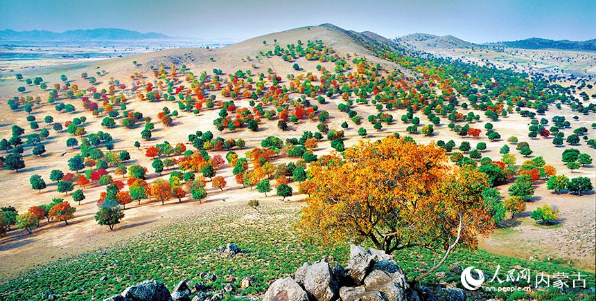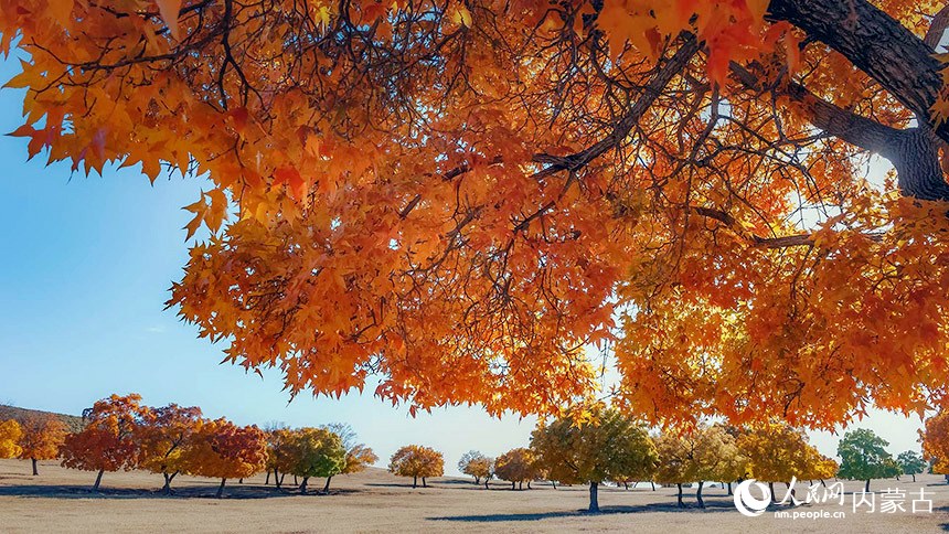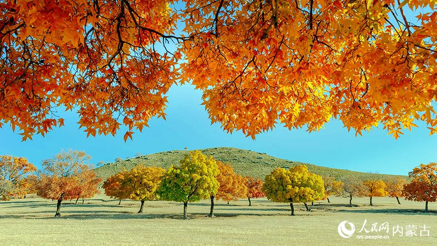 十月深秋,漫山紅遍。內(nèi)蒙古興安盟五角楓迎來(lái)最佳觀賞期。颯颯金風(fēng)拂過(guò),五角楓林層林盡染,楓葉形態(tài)各異、五彩繽紛。秋日“楓”景美不勝收。(富麗娟、劉藝琳)