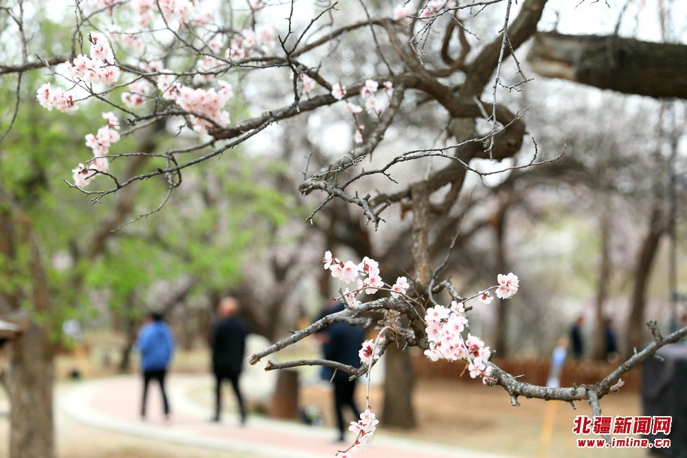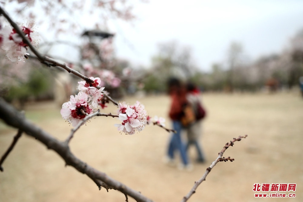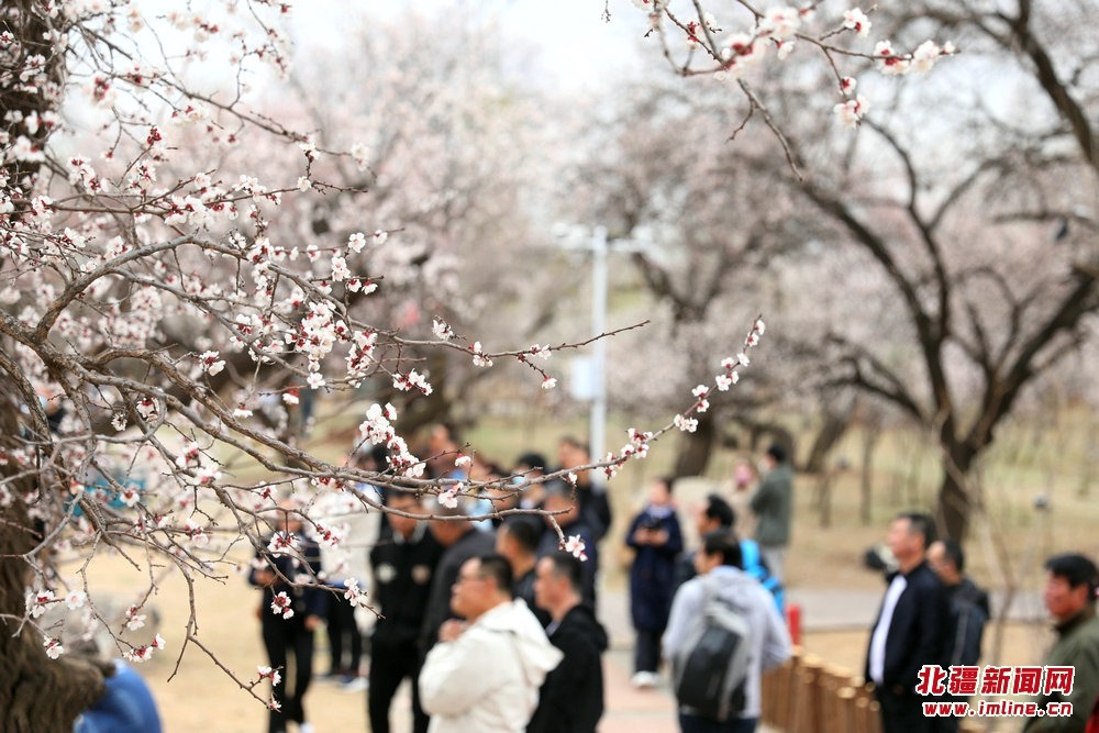 游人在烏素圖老杏園內(nèi)游園賞花