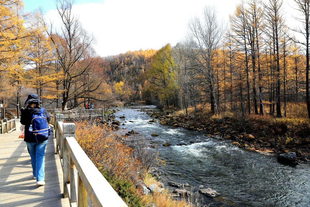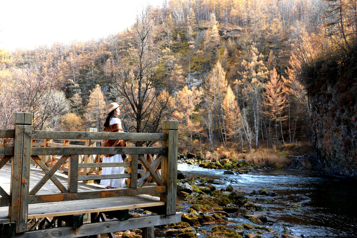 9月29日,游客在內(nèi)蒙古阿爾山國家森林公園不凍河邊小憩 北疆新聞?dòng)浾?張楊攝影