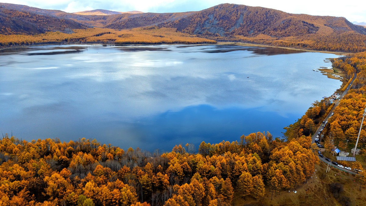 9月29日,空中視角下的內(nèi)蒙古阿爾山國家森林公園杜鵑湖 北疆新聞?dòng)浾?張楊攝影