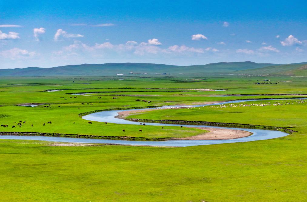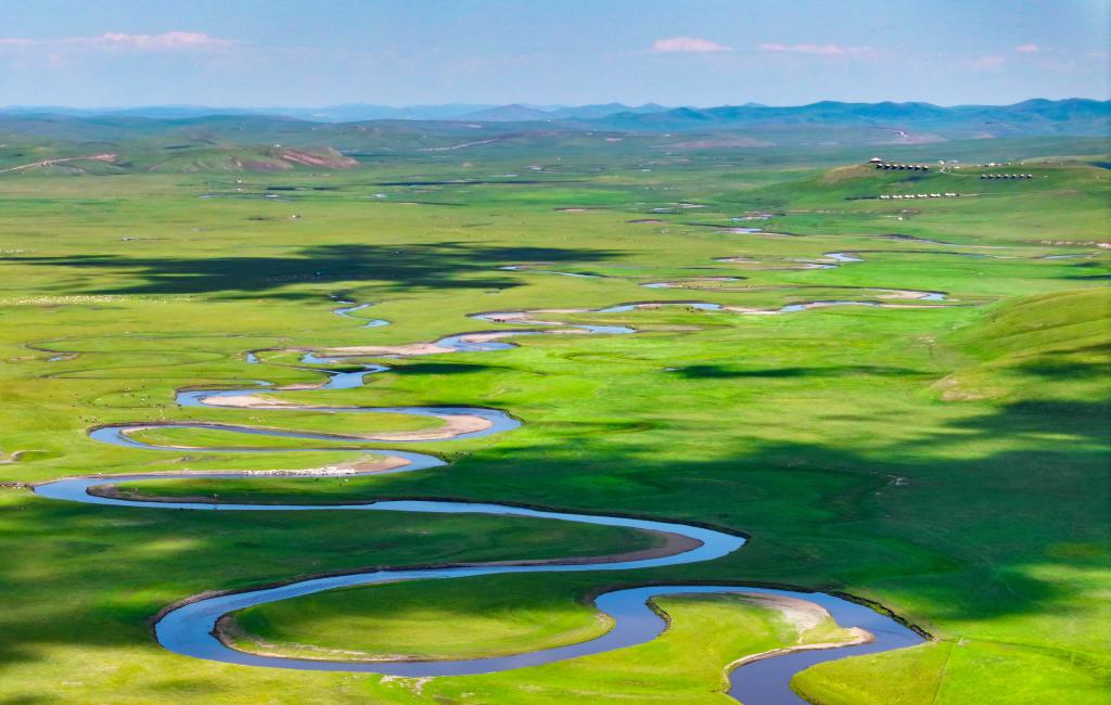 以“曲”聞名天下的莫爾格勒河發(fā)源于內(nèi)蒙古自治區(qū)呼倫貝爾市陳巴爾虎旗境內(nèi),全長319公里。盛夏時(shí)節(jié),迂回輾轉(zhuǎn)的河道、低垂的云影、成群的牛羊共同構(gòu)成一幅宛如油畫般的草原風(fēng)情畫卷。