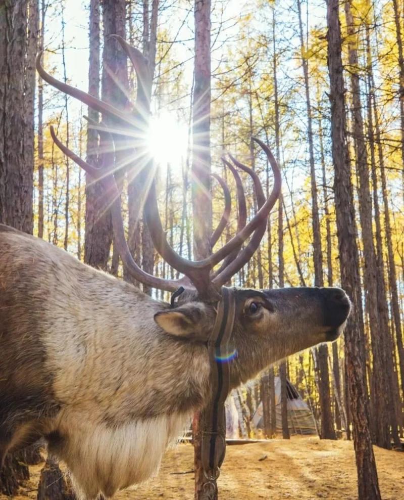 馴鹿互動(dòng):16:00至17:00林區(qū)光線柔和,讓模特手持苔蘚投喂馴鹿,用連拍模式抓拍馴鹿抬頭、人物微笑的瞬間;馴鹿低頭時(shí),可拍攝人物輕撫鹿角的特寫,體現(xiàn)人與動(dòng)物的溫情。