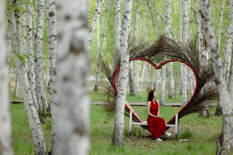 界河白樺林:秋黃的白樺樹與界河形成層次感,用長(zhǎng)焦鏡頭壓縮空間,拍攝人物漫步林間的背影,背景虛化突出“人在畫中游”的意境。