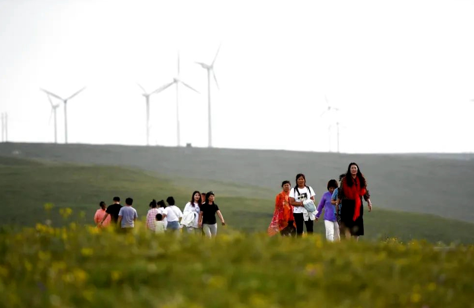 游客打卡烏蘭察布市黃花溝景區(qū)。