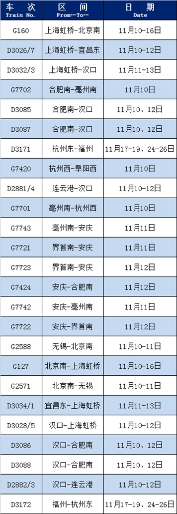 3月1日至3月7日呼和浩特開Z311次、3月2日至3月8日西寧開Z312次旅客列車停運;