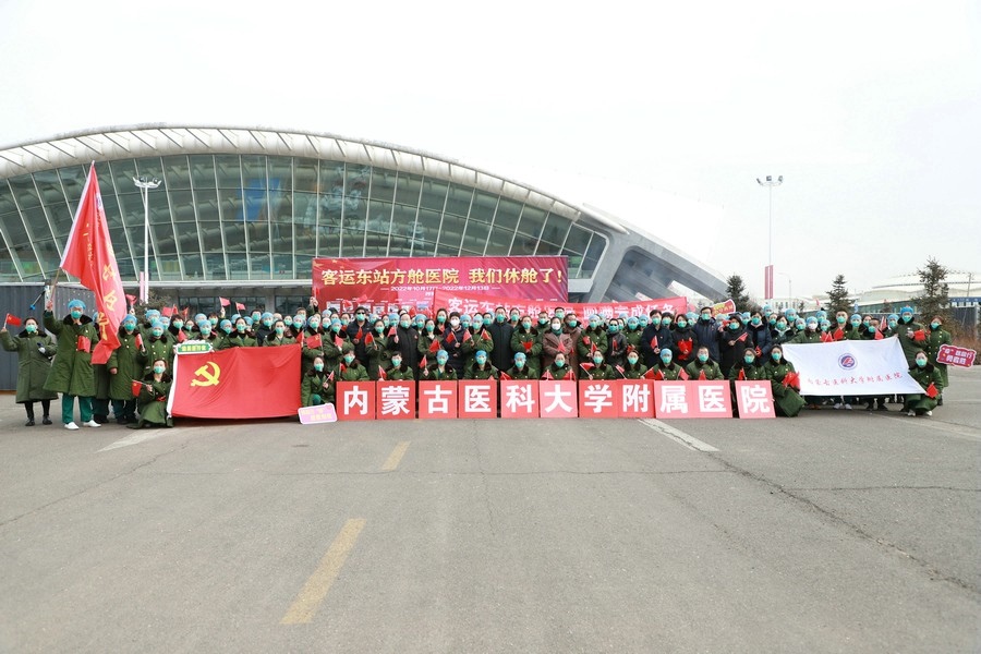 由內(nèi)蒙古醫(yī)科大學(xué)附屬醫(yī)院托管的長(zhǎng)途客運(yùn)東站方艙醫(yī)院,開(kāi)放床位1428張,63天里,醫(yī)療隊(duì)員與龍江同道、區(qū)內(nèi)兄弟醫(yī)療隊(duì)攜手同心,將方艙醫(yī)院建成了暖心有愛(ài)的“家”,在這里愈疾愈心,精心呵護(hù)每一位患者重獲健康,他們中年齡最長(zhǎng)者86歲,最小患兒僅出生5個(gè)月。