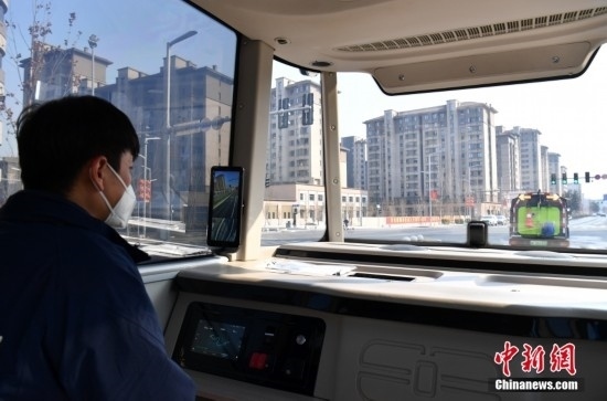 2月22日,智能網(wǎng)聯(lián)巴士901線(xiàn)測(cè)試車(chē)輛準(zhǔn)備發(fā)車(chē)。雄安新區(qū)的智能網(wǎng)聯(lián)巴士近期正在進(jìn)行投入運(yùn)營(yíng)前的道路測(cè)試,該巴士配備了超高感度攝像頭、超聲波雷達(dá)、激光雷達(dá)、毫米波雷達(dá)等感知設(shè)備,組成了車(chē)輛的“眼睛”。車(chē)輛可自主識(shí)別紅綠燈、道路提示牌和車(chē)道標(biāo)線(xiàn)等,做出跟車(chē)、超車(chē)、停車(chē)等動(dòng)作。中新社記者 韓冰 攝