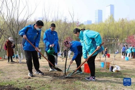 當(dāng)日,合肥市包河區(qū)濱湖世紀(jì)社區(qū)聯(lián)合轄區(qū)消防工作人員在雨水公園開展“手牽手護(hù)綠一起行”義務(wù)植樹活動,綠化家園。