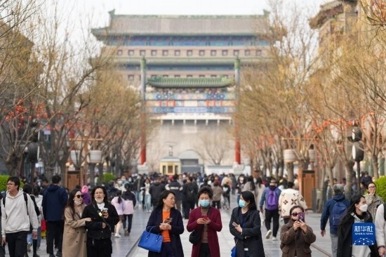 當(dāng)日,北京前門(mén)大街商圈游人如織,眾多市民游客在這里參觀(guān)游覽。