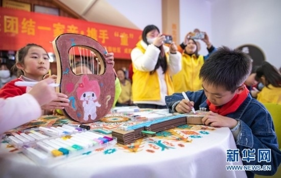8歲的土旦卡卓是來自青海玉樹藏族自治州的藏族小朋友,她在為手中紙質(zhì)瑤琴涂畫的同時也學(xué)習(xí)著其他民族的文化風(fēng)俗。