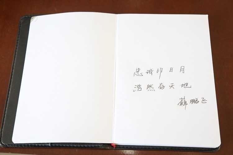 薛鵬飛筆記本扉頁的文字。受訪者供圖
