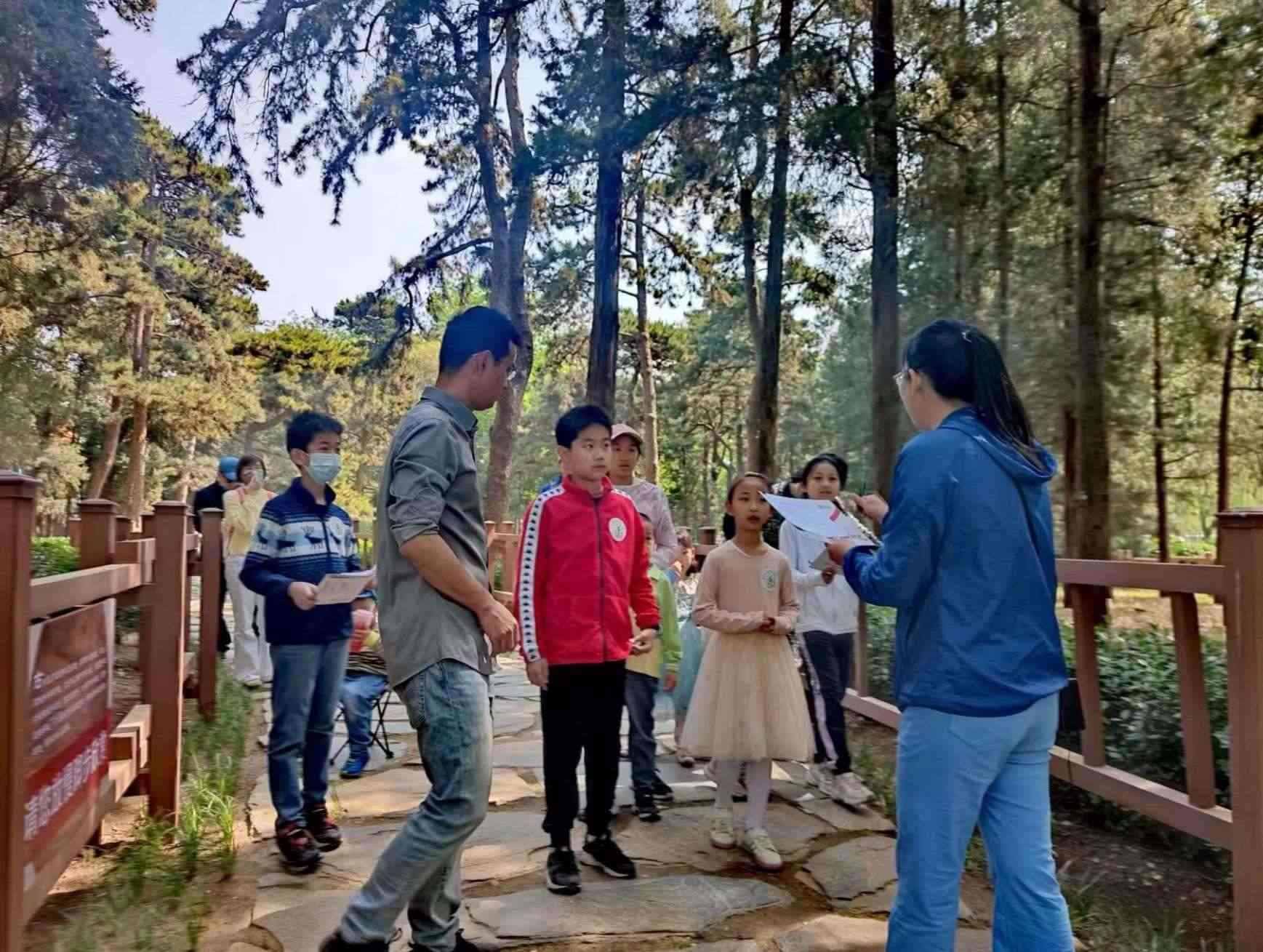 上午9時(shí)30分,在玉淵潭公園蒼松翠柏的古樹園區(qū),一場(chǎng)“玉淵濃蔭下 大樹繪筆間”古樹探秘與自然筆記活動(dòng)正在舉行。9到12歲共17組家庭共同參與公園組織的自然探索親子活動(dòng)。
