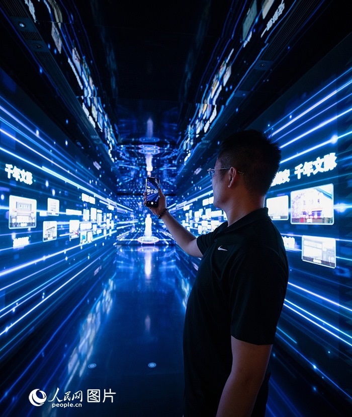 中國旅游日前夕,游客在雄安印象展館內(nèi)參觀體驗。人民網(wǎng) 李兆民攝